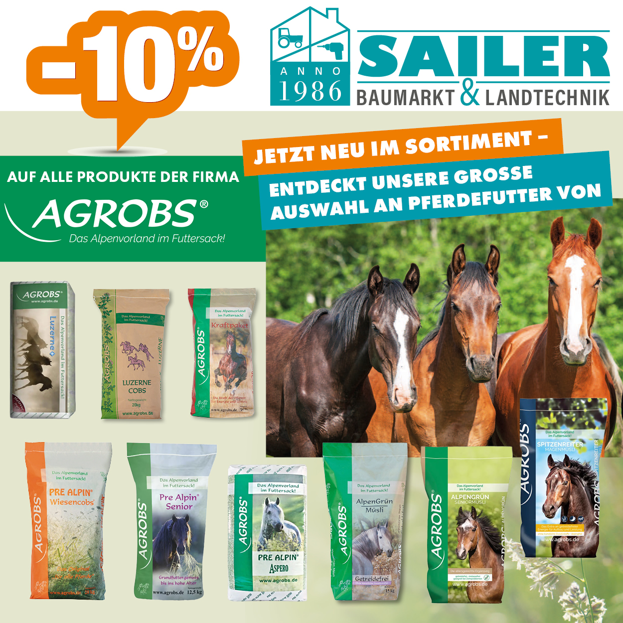 Wir erweitern unser Sortiment: Ab sofort erhalten Sie bei uns hochwertiges AGROBS Pferdefutter für eine natürliche, Pferdefütterung. Die Produkte von AGROBS stehen für Qualität, Strukturvielfalt und eine artgerechte Ernährung – ideal für Freizeit-, Sport- und Seniorpferde sowie für empfindliche Pferde.
